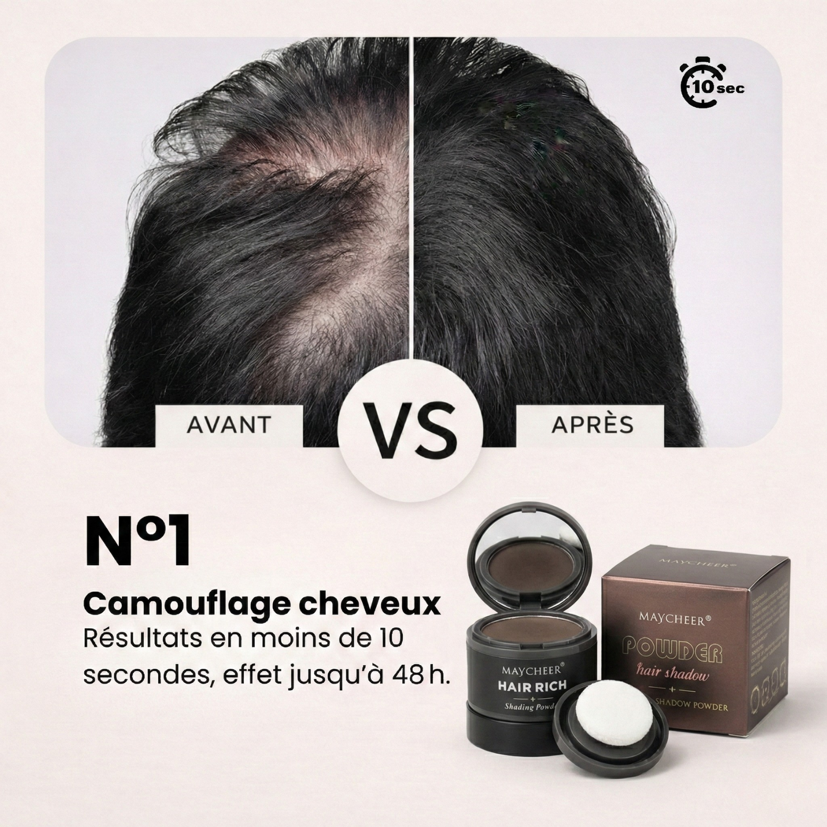 C'est une poudre densifiante qui se fixe électrostatiquement à vos cheveux existants pour combler les trous et donner du volume instantanément.